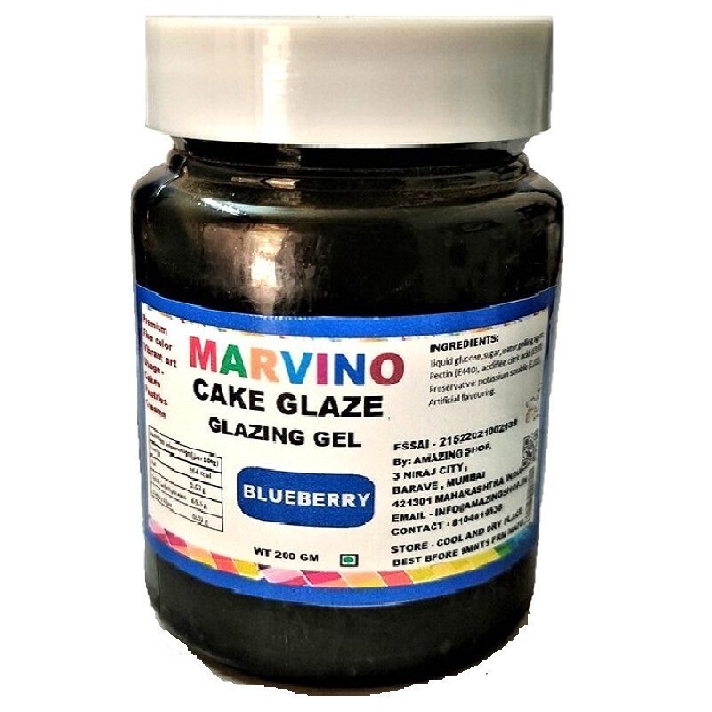 It is Ready to Use, Instant Blueberry Glaze 200 gm For Cake Decorating. which is shiny transparent on cakes.